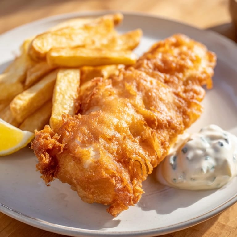 Save Years ago, I stood in a cramped London chippy on a rainy Tuesday evening, watching through the steamy window as a man in a grease-stained apron lowered basket after basket of fish into bubbling oil. The smell hit me before I even opened the door—salt, vinegar, something impossibly golden. That moment stuck with me, and now whenever I make fish and chips at home, I chase that exact memory: the crispy snap of the batter, the soft flake of perfectly cooked fish, the way everything tastes better wrapped in newspaper and eaten with your fingers.