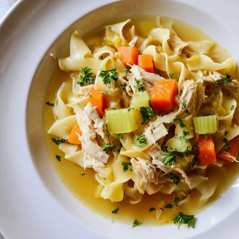 Save A comforting, classic soup featuring tender chicken, hearty vegetables, and egg noodles in a flavorful homemade broth—perfect for chilly days or when you need a nourishing boost.