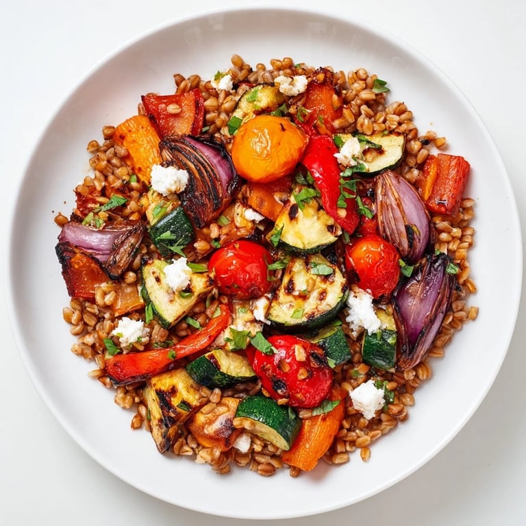 Save There is something deeply satisfying about a dish that comes together so simply yet tastes so complex and nourishing. This farro with roasted vegetables has become a staple in my kitchen, and I hope it finds a regular place in yours too.