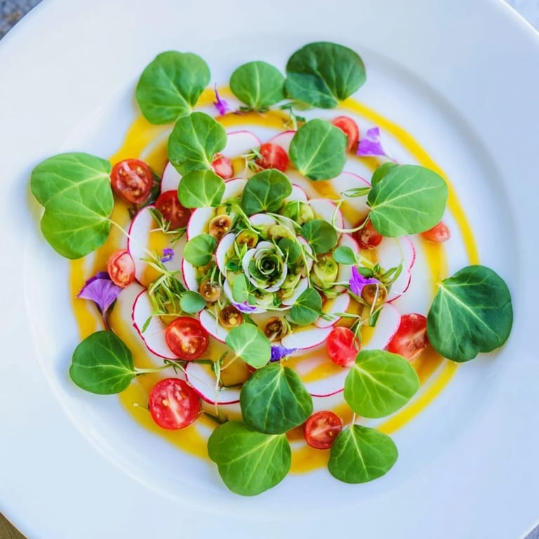Save I stumbled upon the Fibonacci sequence one afternoon while reorganizing my kitchen, and somehow it clicked that nature's most beautiful pattern could become a dinner plate. The spiral showed up everywhere—in pinecones on my windowsill, in the shells my kids collected—and I wondered if I could arrange vegetables the same way. That evening, I spent an hour laying out baby spinach and arugula in expanding crescents, stepping back after each ring like I was composing something, and when the light hit it just right, I realized I'd made something that looked almost too pretty to eat.