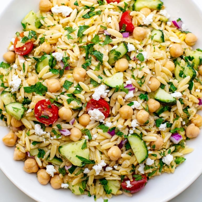 Save Last summer my neighbor brought this to our block party and I literally hovered by the bowl until she wrote the recipe down for me on a cocktail napkin. Something about the cool orzo mixed with bright herbs just hits differently when it's ninety degrees out and you've been standing in front of a grill for three hours.