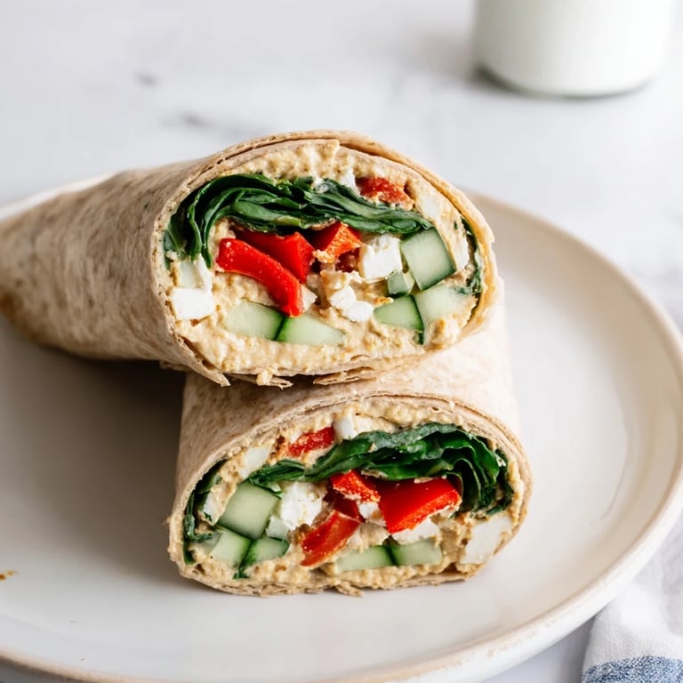 The beauty of this wrap is that it's forgiving and adaptable. I've swapped the spinach for arugula when I wanted something peppery, and I've added sliced kalamata olives when I was craving something briny. Once, I didn't have feta, so I used goat cheese instead, and it was just as good. You can drizzle a little olive oil or lemon juice over the veggies before rolling if you want extra brightness.