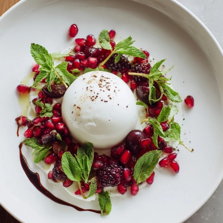 - Set the burrata ball in the center with your hands—it's delicate, so be gentle. The white against the dark fruit should feel intentional.