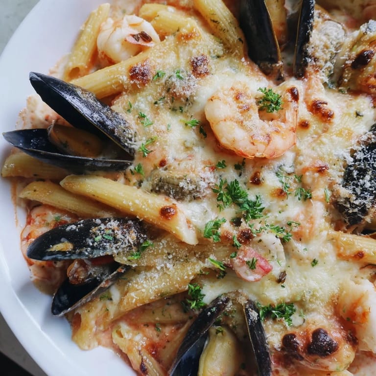 The magic here is balance: sweet tomato, salty seafood, creamy sauce, and crispy cheese all speaking to each other without anyone shouting over the rest. The pasta absorbs just enough sauce to stay interesting without becoming soggy, and the baking dishes concentrates all those flavors into something that feels more elegant than the sum of its parts. It's one of those dishes that tastes like you spent hours fussing when really you just understood the timing.